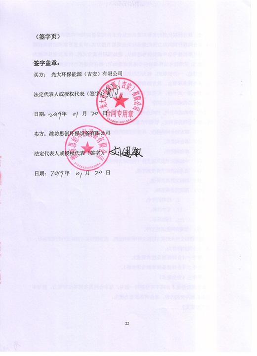Sales contract of dust removal and ammonia removal equipment for Ji'an domestic waste incineration power generation project, fly ash aohe stabilization room and maintenance room