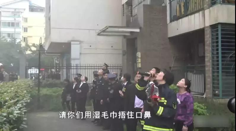消防員擔(dān)心被困居民因火災(zāi)濃煙而產(chǎn)生恐慌情緒和引發(fā)中毒現(xiàn)象,立即通過(guò)喊話器向起火樓棟中的居民呼喊:“樓上居民請(qǐng)注意,樓上居民請(qǐng)注意!請(qǐng)你們用濕毛巾捂住口鼻,把門窗關(guān)好,把門窗關(guān)好,明火已經(jīng)滅了,火燒不到家里的,請(qǐng)不要驚慌,請(qǐng)不要驚慌……”,以此引導(dǎo)居民預(yù)防濃煙中毒,并請(qǐng)居民耐心等待救援。