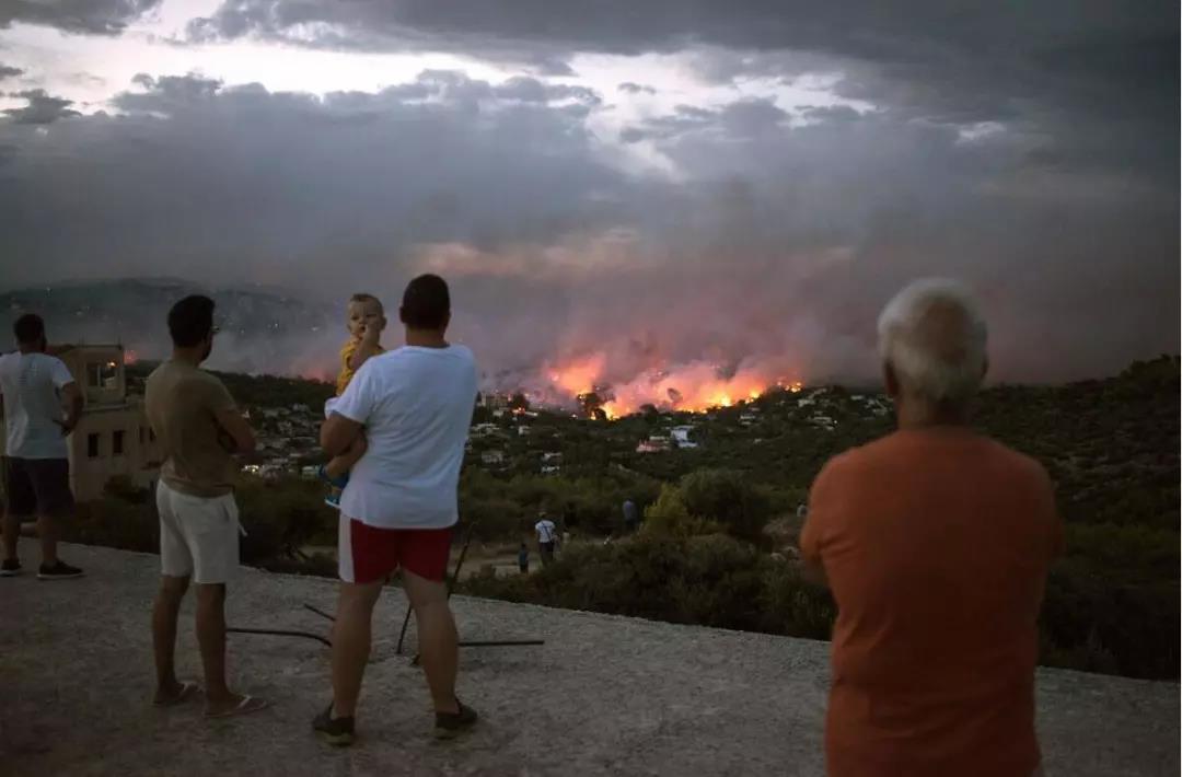 前一天在雅典東北部彭德里地區(qū)發(fā)生的大火很快蔓延到了臨近的村落